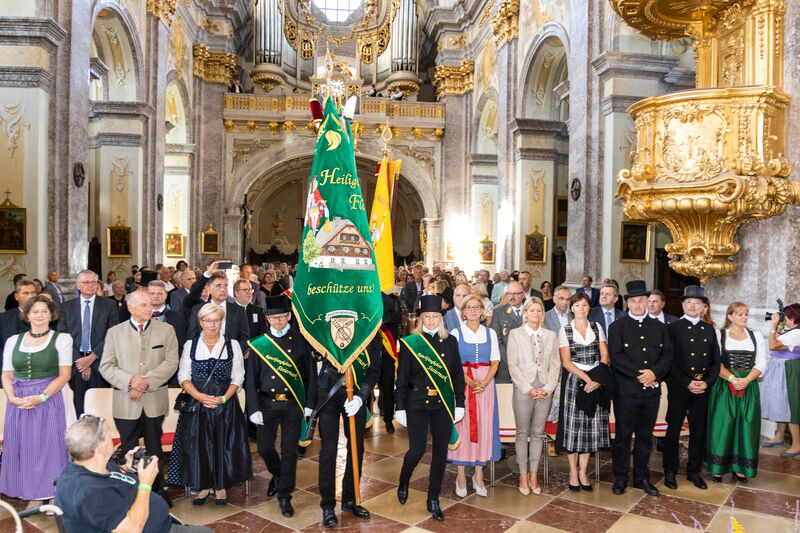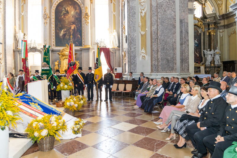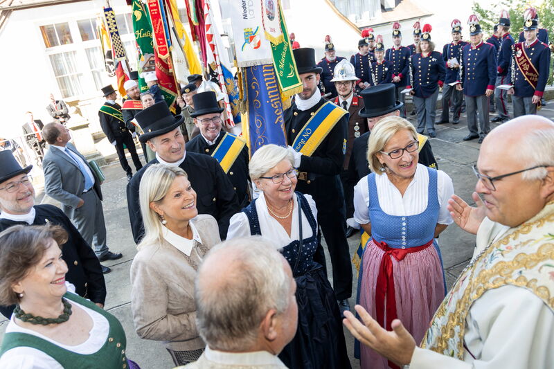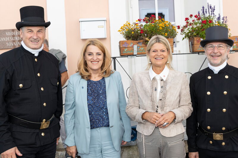 Als Fahnenpatinnen für die neue Fahne der niederösterreichischen Rauchfangkehrer agierten Verteidigungsministerin Klaudia Tanner, Spartenobfrau Renate Scheichelbauer-Schuster und die Präsidentin der Organisation „Hilfe im eigenen Land“, Sissy Pröll. „Die Sicherheitsfamilie ist heute hier versammelt – und die Rauchfangkehrer sind ein wichtiger Teil davon“, so Bundesministerin Tanner im Zuge des Festaktes. Spartenobfrau Scheichelbauer-Schuster sagte, es sei „eine große Ehre und Freude“, Fahnenpatin zu sein, Sissy Pröll hielt fest: „Peter Engelbrechtsmüller steht für Sicherheit und für soziale Kompetenz“.